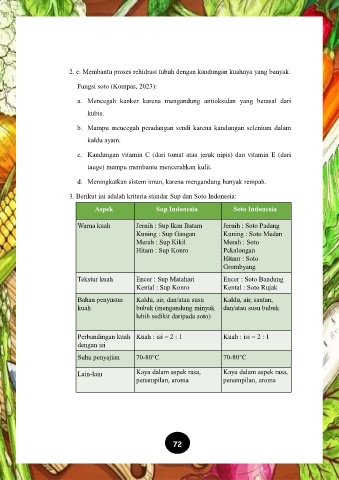 3. Berikut ini adalah kriteria standar Sup dan Soto Indonesia: