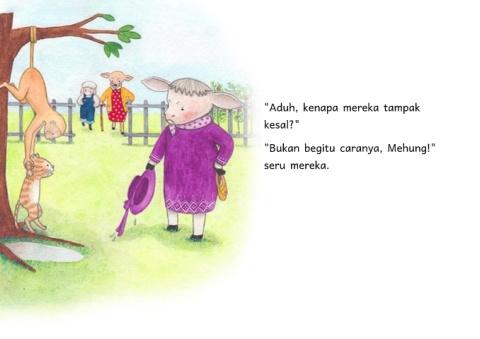 "Aduh, kenapa mereka tampak kesal?" "Bukan begitu caranya, Mehung!" seru mereka.