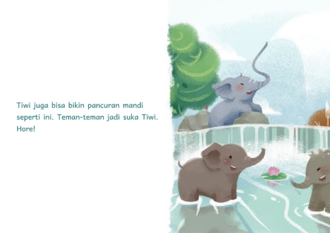 Tiwi juga bisa bikin pancuran mandi seperti ini. Teman-teman jadi suka Tiwi. Hore!