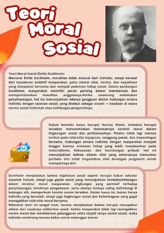 Durkheim menjelaskan bahwa kejahatan sosial seperti korupsi bukan sekadar