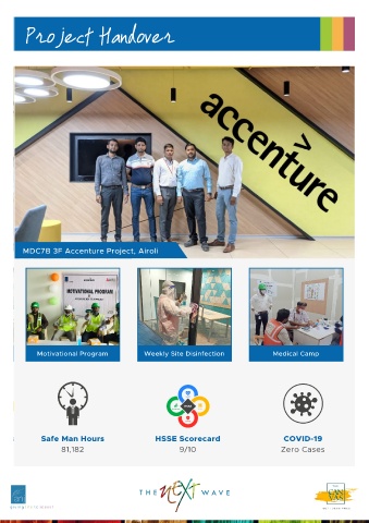 Project Handover MDC7B 3F Accenture Project, Airoli Motivational Program Weekly Site Disinfection Medical Camp Safe Man Hours HSSE Scorecard COVID-19 81,182 9/10 Zero Cases