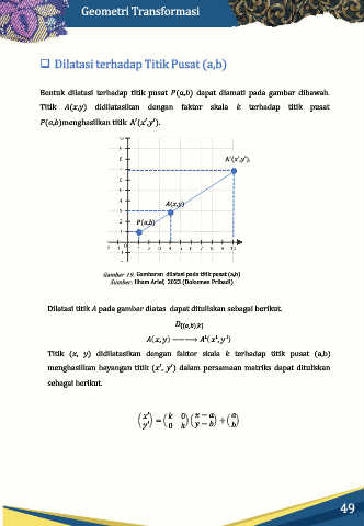Titik ( , ) didilatasikan dengan faktor skala terhadap titik pusat (a,b)