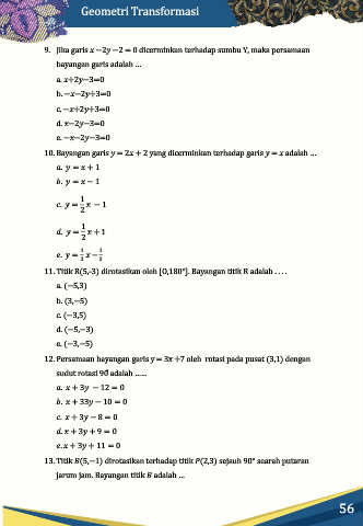 10. Bayangan garis = 2 + 2 yang dicerminkan terhadap garis = adalah …