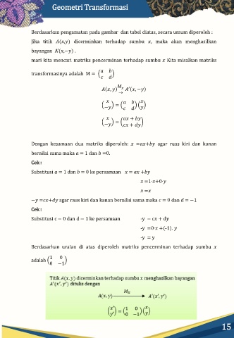 Berdasarkan uraian di atas diperoleh matriks pencerminan terhadap sumbu
