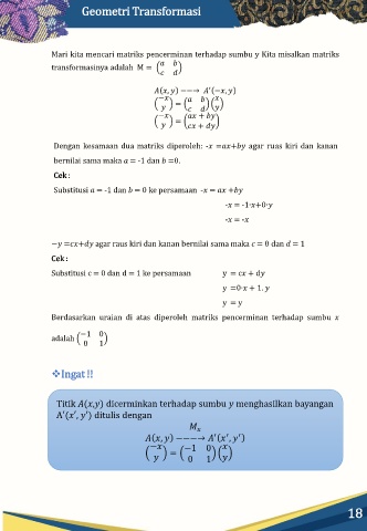 Berdasarkan uraian di atas diperoleh matriks pencerminan terhadap sumbu