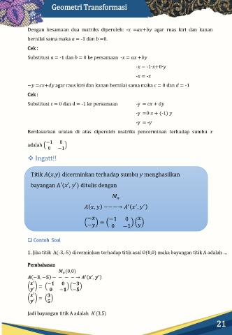 Berdasarkan uraian di atas diperoleh matriks pencerminan terhadap sumbu