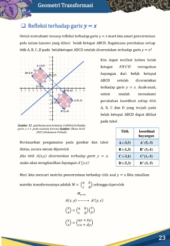 titik A, B, C ,D pada belahketupat ABCD setelah dicerminkan terhadap garis = ?