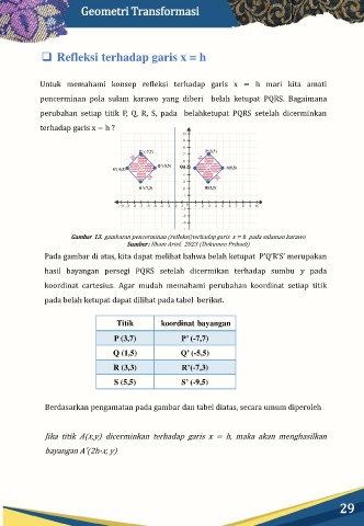 Jika titik ( , ) dicerminkan terhadap garis x = h, maka akan menghasilkan