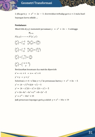 2. Jika garis = + 2 − 5 dicerminkan terhadap garis = 2 maka hasil