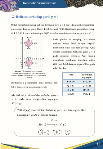 titik P, Q, R, S, pada belahketupat PQRS setelah dicerminkan terhadap garis y = k ?