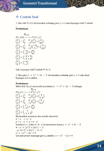 2. Jika garis = + 2 − 5 dicerminkan terhadap garis y = 2 maka hasil