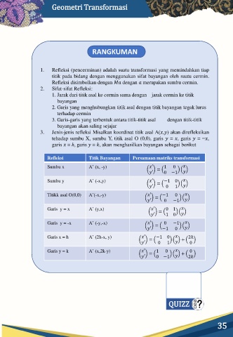 1. Refleksi (pencerminan) adalah suatu transformasi yang memindahkan tiap