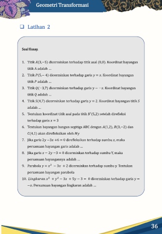 2. Titik (5,− 4) dicerminkan terhadap garis = . Koordinat bayangan