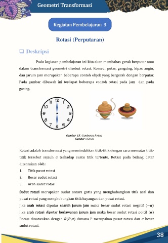 Rotasi dinotasikan dengan ( , ) dimana P merupakan pusat rotasi dan besar