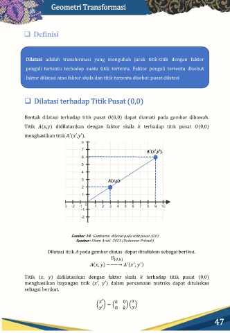 Titik ( , ) didilatasikan dengan faktor skala terhadap titik pusat (0,0)