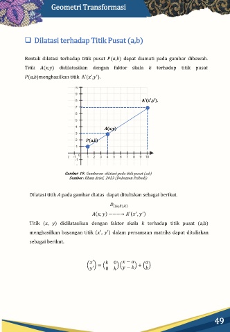 Titik ( , ) didilatasikan dengan faktor skala terhadap titik pusat (a,b)