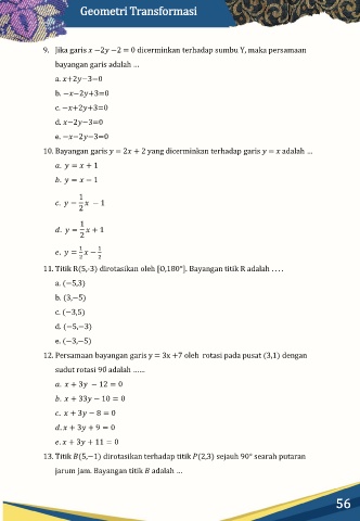10. Bayangan garis = 2 + 2 yang dicerminkan terhadap garis = adalah …
