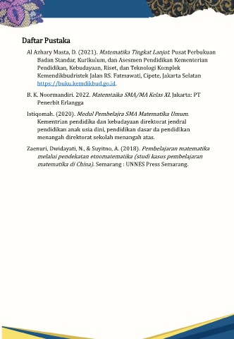 Al Azhary Masta, D. (2021). Matematika Tingkat Lanjut . Pusat Perbukuan