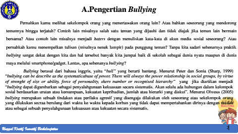 bullying merupakan sebuah tindakan atau perilaku agresif yang disengaja dilakukan oleh seseorang atau sekelompok orang