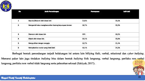 No                                Jenis Perundungan                                            Perempuan                                  Laki-Laki