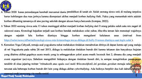 4. Tahun 2020 kasus perundungan kembali mewarnai dunia pendidikan di tanah air. Salah seorang siswa smk di malang terpaksa
