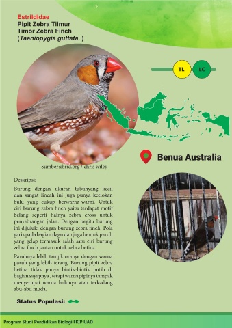 ini dijuluki dengan burung zebra finch. Pola