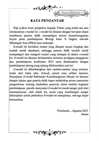 Penyajiaan E-modul Submateri Keanekargaman Hayati ini disusun