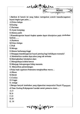 1.Berikut di bawah ini yang bukan merupakan contoh keanekaragaman