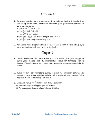 1. Tentukan gradien garis singgung dari kurva-kurva berikut ini pada titik-