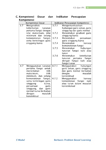C. Kompetensi Dasar dan Indikator Pencapaian