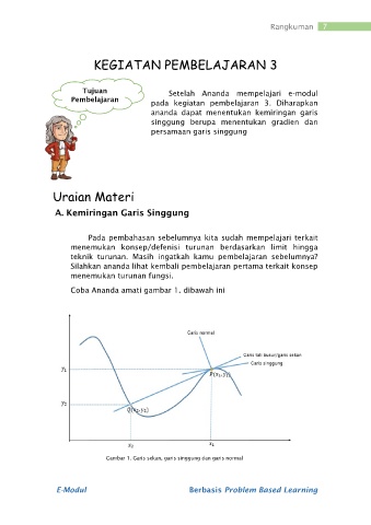 Gambar 1. Garis sekan, garis singgung dan garis normal