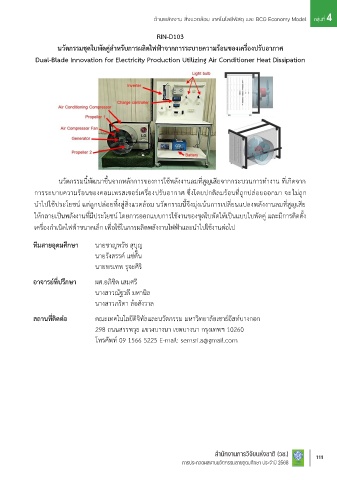 CA-Patch: นวัตกรรมวัสดุปิดแผลต้านเชื้อจากเซลลูโลสอะซิเตต นวัตกรรมชุดใบพัดคู่ส าหรับการผลิตไฟฟ้าจากการระบายความร้อนของเครื่องปรับอากาศ