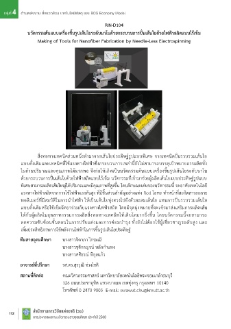 ในด้ำนปริมำณและคุณภำพได้มำกพอ จึงก่อให้เกิดเป็นนวัตกรรมต้นแบบเครื่องขึ้นรูปเส้นใยระดับนำโน โดยไม่ก่อให้เกิดมลพิษหรือผลกระทบต่อระบบนิเวศ กลุ่มเป้ำหมำยของนวัตกรรมนี้ ได้แก่ หน่วยงำนรัฐด้ำนป่ำไม้