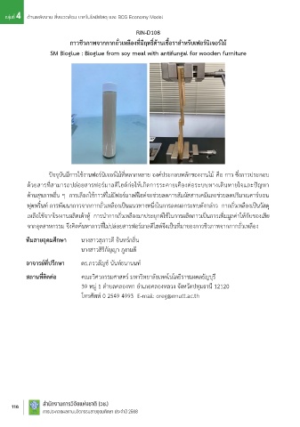 กาวชีวภาพจากกากถั่วเหลืองที่มีฤทธิ์ต้านเชื้อราส าหรับเฟอร์นิเจอร์ไม้ เทปพลาสติกชีวภาพที่มีฤทธิ์ในการต้านทานจุลินทรีย์ก่อโรคส าหรับปิดแผลต้นไม้