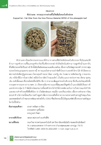 ซัปปาแคท : ทรายแมวจากส่วนที่ไม่ใช่เส้นใยของใบสับปะรด จานกระดาษเส้นใยทางปาล์มน้ ามันเคลือบพลาสติกชีวภาพจากแป้งสาคูพัทลุง