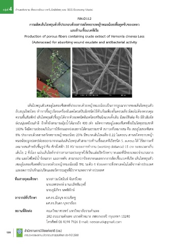 เช่น แผลไฟไหมนำร้อนลวก แผลกดทบ สำมำรถปกปองบำดแผลจำกกำรติดเชอแบคทเรีย เส้นใยพรุนตัว สถานที่ติดต่อ ส ำนักวิชำวิศวกรรมศำสตร์และเทคโนโลยี มหำวิทยำลัยวลัยลักษณ์