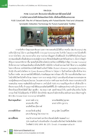 ที่สะดวกและเร็วขึ้น ด้ำนคุณภำพน้ ำสีย้อมและผลิตภัณฑ์ที่ดีขึ้น มีกำรผลิตและจ ำหน่ำยจริง ผู้ประกอบกำร ทีมสายอุดมศึกษา นำงสำววรำภรณ์ ประวัติ