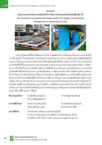 ผลงำนนวัตกรรมที่ได้สร้ำงคือระบบกักเก็บอำกำศอัดส ำหรับกำรเพิ่มค่ำออกซิเจนละลำยในน้ ำส ำหรับ