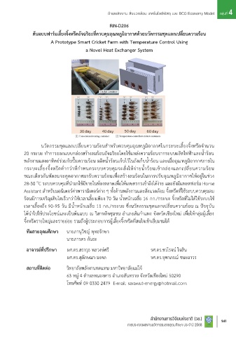 นวัตกรรมระบบกักเก็บอากาศอัดส าหรับการจัดการปริมาณออกซเจนในบ่อเลี้ยงสัตว์น้ า ต้นแบบฟาร์มเลี้ยงจิ้งหรีดอัจฉรยะที่ควบคุมอุณหภูมิอากาศด้วยนวัตกรรมชุดแลกเปลี่ยนความร้อน