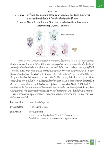ทีมสายอุดมศึกษา นำงสำวกำญจน์ชิตำ สิงหำเวช ปัญญำประดิษฐ์อัลฟำโฟว์สำมพบว่ำ เอนไซม์สำยพันธุ์ใหม่มีต ำแหน่งลูปที่เพิ่มขึ้นมำ และจำกกำรศึกษำ