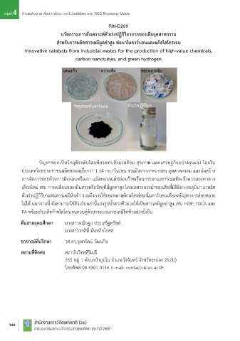 ส าหรับการผลิตสารเคมีมูลค่าสูง ท่อนาโนคาร์บอนและแก๊สไฮโดรเจน Repelix : Rodent Repellent for Sustainable Agriculture