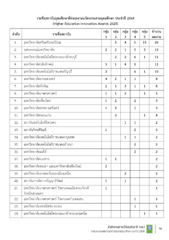 ผังแสดงผลงานนวัตกรรมสายอุดมศึกษา ประจ าปี 2568 รายชื่อสถาบันอุดมศึกษาที่ส่งผลงานนวัตกรรมสายอุดมศึกษา ประจ าปี 2568