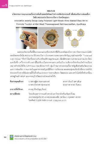 นวัตกรรมการออกแบบเครื่องประดับด้วยเทคนิคโพลาไรซ์ จากศิลปะกระจกสี เพื่อส่งเสริมการท่องเที่ยว การออกแบบของที่ระลึกจากอัตลักษณ์ประจ าจังหวัด เพื่อแบรนด์เครื่องประดับ