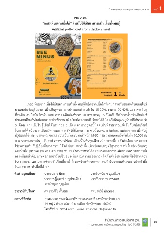 ไบโอเพียวริฟาย, ผลิตภัณฑ์บ้าบัดน ้าเสียอย่างยั่งยืนด้วยจุลินทรีย์ “เกสรเทียมจากเนื้อไก่” ส าหรับใช้เป็นอาหารเสริมเลี้ยงผึ้งพันธุ์