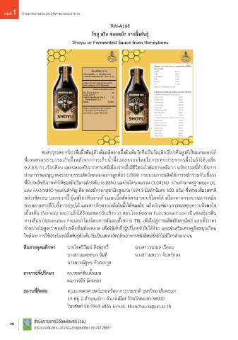 และ FAO/WHO จุดเด่นส ำคัญ คือ ซอสมีกรดกลูตำมิกสูงมำก (694.3 มิลลิกรัมต่อ 100 กรัม) ซึ่งช่วยเพิ่มรสชำติ ทีมสายอุดมศึกษา นำงสำวฐิตำนันท์ นำโสก