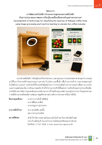 เพิ่มขึ้น พร้อมสนับสนุนกำรวิจัยและพัฒนำเพื่อน ำไปต่อยอดเป็นอำหำรฟังก์ชนมูลค่ำสูง ด้ำนภำคเอกชนร่วมมือ มำใชในกำรวเครำะหลักษณะของผลกำแฟ เชน ส รปทรง และพนผิว เพอจำแนกระดบควำมสุกของผลกำแฟ