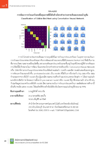 กับชดข้อมูลประเภทรังนกเพื่อให้ model มควำมสำมำรถในกำรจำแนกประเภทรงนก ผลลัพธ์ของกำรศกษำน ้ ี NST-009 โดยใชโครงขำยประสำทเทยมแบบคอนโวลูชน (CNN) เพอวเครำะหและติดตำมกำรเจริญเตบโต