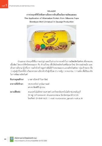 เนื้อสัตว์ โดยกำรใชชนิดของแมลง คือ ดักแด้ไหม เพื่อให้เกิดผลิตภัณฑ์ที่แปลกใหม่ มีควำมน่ำสนใจ และ ของแมลงและท ำให้เกิดภำวะจมน้ ำของแมลงหลังฉีดพ่นสำรละลำยจนแมลงตำย และยังท ำให้ไข่ของเพลี้ย