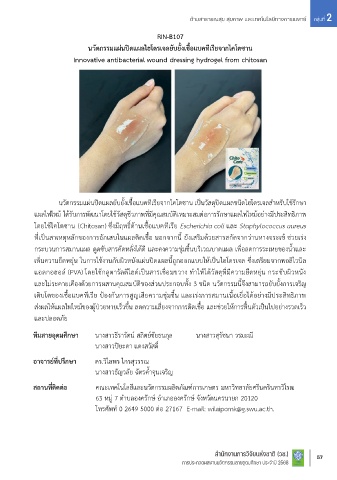 พร้อมระบบให้ค าแนะน าสุขภาพหลายภาษาส าหรับการแพทย์ทางไกลส่วนบุคคล Innovative antibacterial wound dressing hydrogel from chitosan