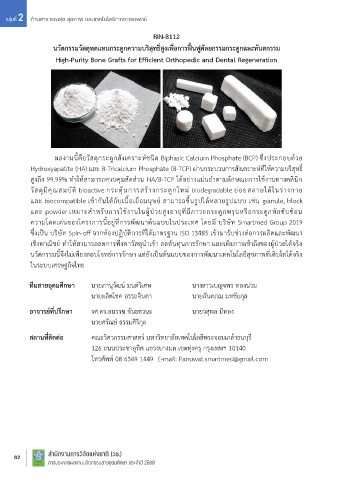 ผลงำนนี้คือวัสดุกระดูกสังเครำะห์ชนิด Biphasic Calcium Phosphate (BCP) ซึ่งประกอบด้วย